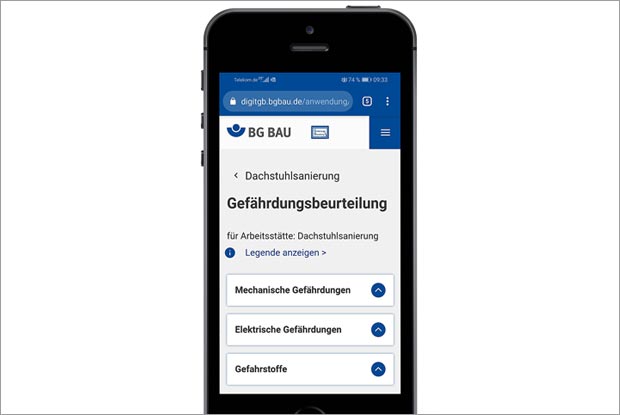 Gefährdungsbeurteilung mithilfe der App DigitGB: Sie wurde von der BG BAU entwickelt und gibt bereits viele Auswahlmöglichkeiten vor.