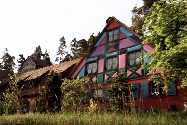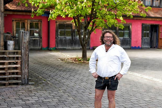 Sein eigenes Zuhause wiederum sieht sehr künstlerisch aus: Eigentlich ist es ein traditionelles Fachwerkhaus, wie es in Dirschs Heimat Mittelfranken üblich ist: „Früher war es schwarz-weiß, aber dann haben meine Frau und ich die Fachwerke mit bunten Farben angestrichen“. Er erzählt und lacht: „Oft spazieren Kinder vorbei und sagen: Schau mal, da ist ja die Villa Kunterbunt.“