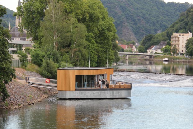 Die hölzerne Flusssauna in Bad Ems war sein erstes schwimmendes Projekt.